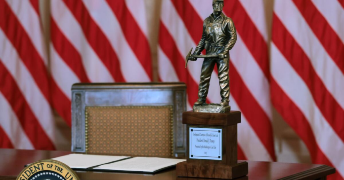 Trump announced the initiatives at a White House event where he also received an “Undisputed Champion of Coal” award from the Washington Coal Club, a pro-coal group.